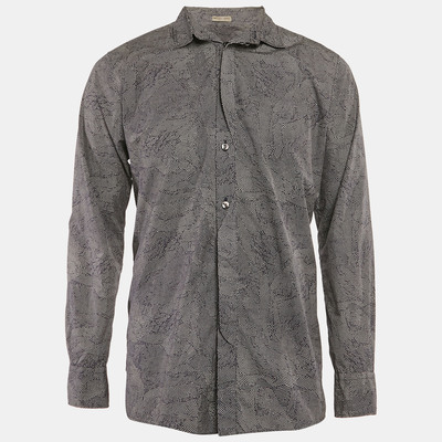 Indulge in the relaxed elegance of this navy blue long sleeve shirt by Bottega Veneta. Crafted entirely from luxurious cotton, this piece offers unmatched comfort while exuding sophistication. The artistic print adds a touch of creative flair, making it perfect for casual outings with a distinctive edge. Its refined button up design showcases meticulous craftsmanship, a hallmark of Bottega Venetas commitment to exceptional quality. Elevate your everyday style with this timeless wardrobe staple that speaks of understated luxury.