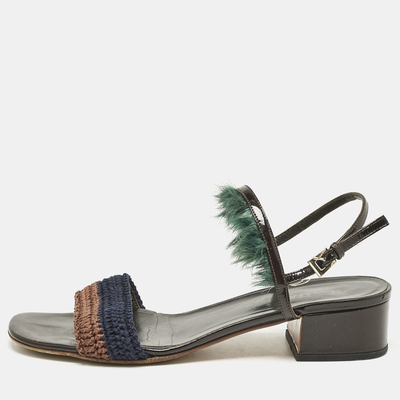 Prada Multicolor Crochet and Feather Ankle Strap Sandals Size 37.5 1107412 - 1