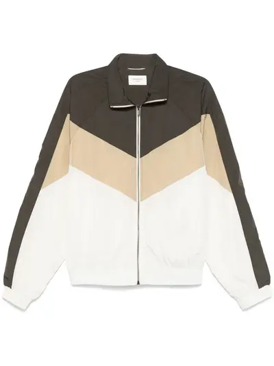 coffee brown front zip fastening two front welt pockets elasticated cuffs elasticated hem