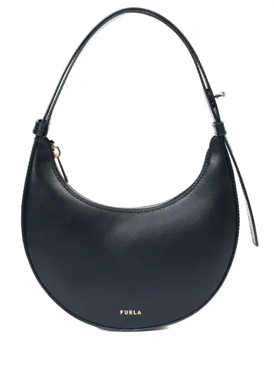 -Черная сумка из натуральной кожи от FURLA. -Лаконичный крой выделяет эффектный силуэт в виде полумесяца, ставший символом элегантности. -Модель выполнена в идеальном размере, чтобы вы всегда могли иметь под рукой все самое необходимое. -Сумку с регулируемым ремнем очень удобно носить как на плече, так и в руке. -Детали: три внутренних слота для карт, регулируемый плечевой ремень с застежкой с поворотным замком, застежка-молния сверху, принт в виде логотипа Furla спереди.