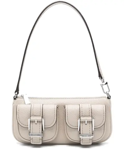 light beige top zip fastening adjustable shoulder strap two front flap pockets internal logo patch