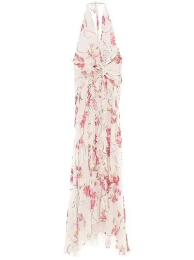 white concealed rear zip fastening halterneck tie fastening front slit plissé effect
