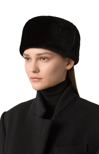 Шапку-кубанку «Кэйли» сшили из меха черной норки, обработанной под бархат. Модель дополнили фирменным гофрированным подкладом, не электризующим волосы и не сминающим прическу.