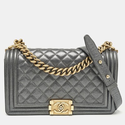 Chanel Metallic Grey Quilted Leather Medium Boy Flap Bag 1110313 (lpn29227138)