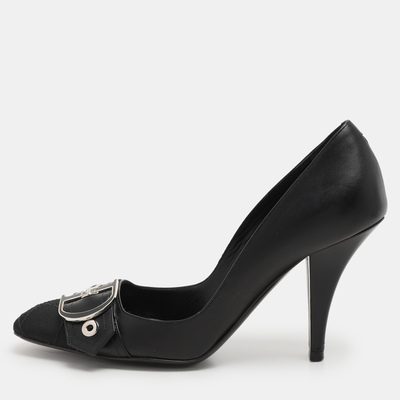 Dior Black Leather And Cannage Canvas Cap Toe D Buckle Pumps Size 36 1110147 (чёрный, lpn29227210)