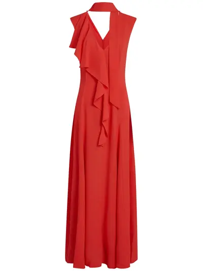 red concealed rear zip fastening scarf detailing V-neck sleeveless