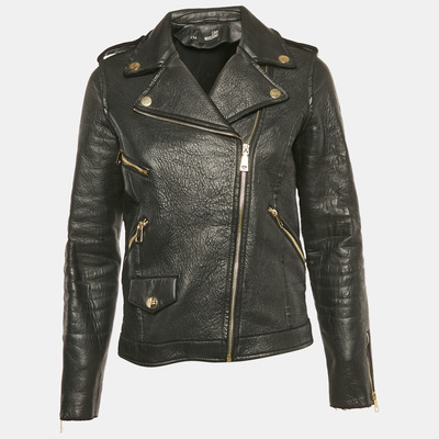 Love Moschino Black Spider Web Print Leather Riders Jacket S 1109161 - 1