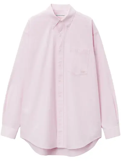 light pink front button fastening classic collar chest patch pocket embroidered logo at the chest box-pleat detail buttoned cuffs