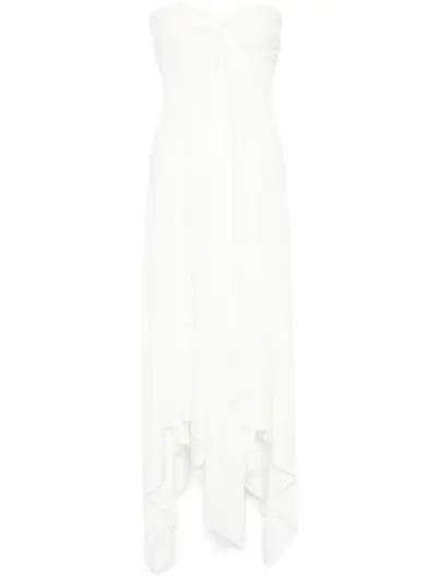 white rear tie fastening sweetheart neck strapless asymmetric hem