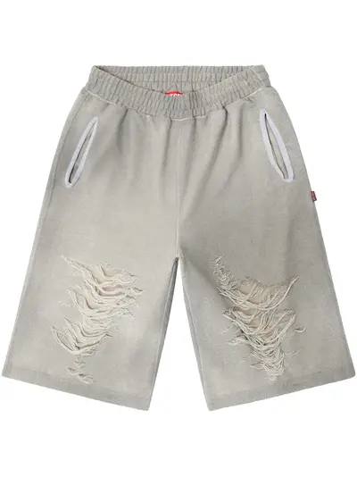 light grey elasticated waistband two side slit pockets rear patch pocket ripped detailing
