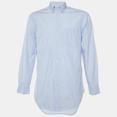 Crafted from premium cotton, this blue striped long sleeve shirt by Armani Collezioni delivers effortless sophistication. The lightweight fabric and precise tailoring make it an essential wardrobe piece.