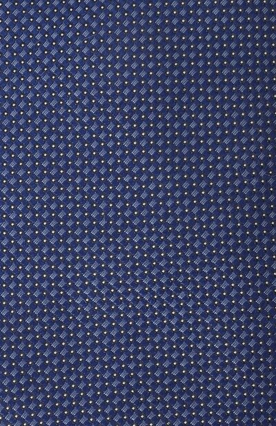 Для изготовления модели использовали плотную шелковую ткань, усиленную полиэстером. Галстук с жаккардовым геометрическим микроузором будет органично сочетаться с сорочкой любой цветовой гаммы.