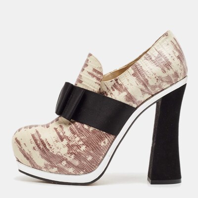 Miu Miu Beige/Black Lizard Embossed Leather Bow Platform Block Heel Pumps Size 38.5 1111615 (бежевый, lpn29255324)