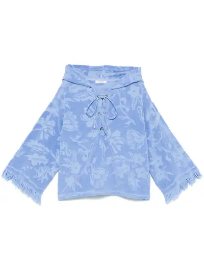 cornflower blue front lace-up fastening patterned jacquard towelling finish frayed detailing