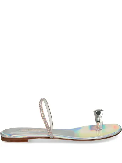 silver-tone slip-on style single toe strap crystal embellishment iridescent effect