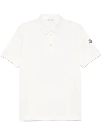 white front button placket short sleeves short side slits logo patch at the sleeve