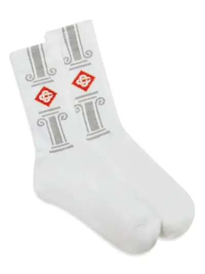 white ankle-length intarsia-knit logo ribbed trim Be sure before opening, as socks and hosiery can only be returned in their original, unopened packaging.