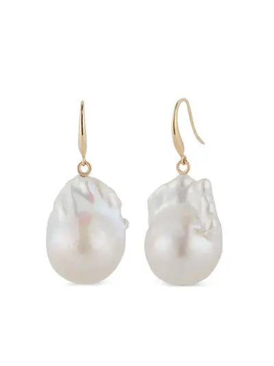 14kt yellow gold polished finish drop design baroque pearl French hook for pierced ears These earrings come as a pair. Pearls should be the last thing that you put on in the morning and the first thing you take off at night. Avoid contact with perfumes or creams, and simply wipe with a soft cloth to clean.