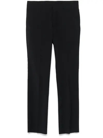 midnight blue concealed front button, hook and zip fastening belt loops two side slash pockets two rear welt pockets