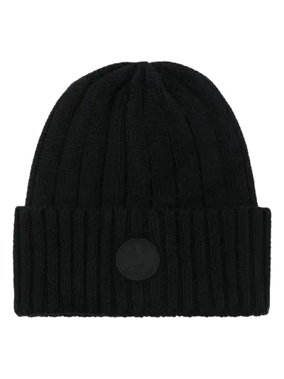 black cotton ribbed knit bowl crown logo patch to the front turn-up brim pull-on style