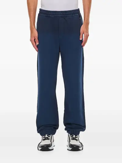 indigo blue elasticated waistband two side slit pockets gradient effect embroidered logo to the rear