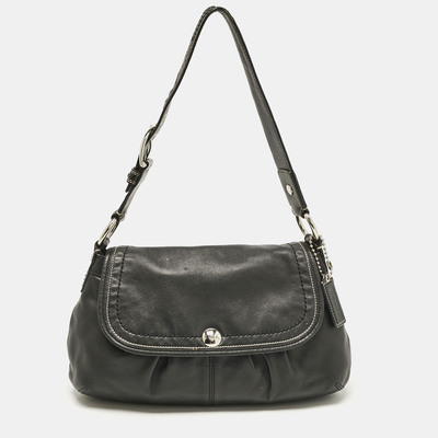 Coach Black Leather Flap Shoulder Bag 1115967 (чёрный, lpn29295496)