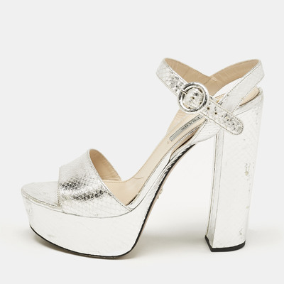 Prada Silver Python Embossed Leather Platform Ankle Strap Sandals Size 39 1115595 (lpn29295989)