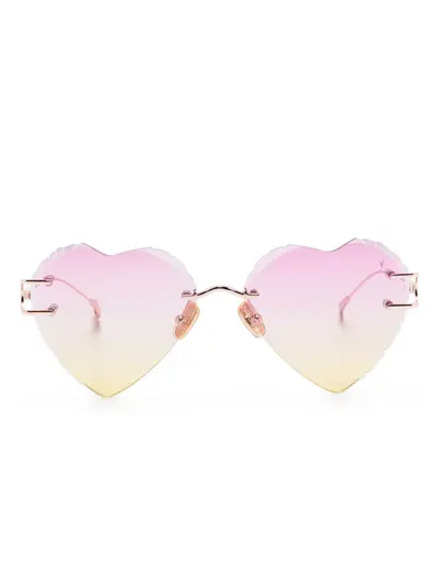 gold-tone nose pads rimless lenses These glasses come with a protective case.