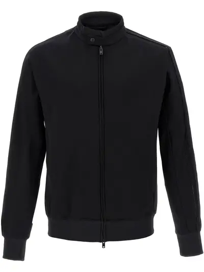 black front two-way zip fastening press-stud fastening collar two side slit pockets micro-mesh panels