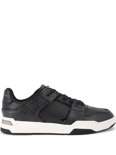 black front lace-up fastening logo plaque branded heel counter panelled design