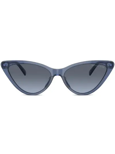 cobalt blue transparent design cat-eye frame gradient lenses straight arms logo plaque at the arm curved tips nose pads These glasses come with a protective case.