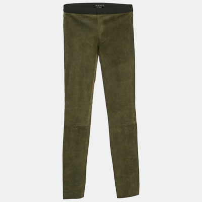 Crafted from supple green suede, these Theory skinny pants offer a refined take on contemporary style. Designed for a sleek, second skin fit, they effortlessly balance sophistication and versatility. The rich hue adds a distinctive touch, making them a perfect choice for both day and evening looks. Pair them with tailored separates or a relaxed knit for effortless elegance. A timeless wardrobe essential with a luxurious feel.