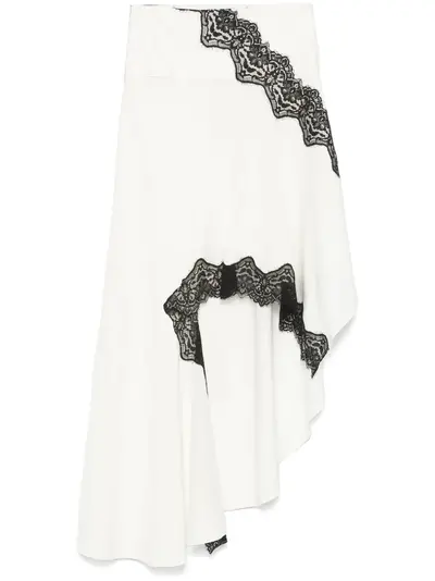 white concealed side zip fastening lace trim unlined asymmetric hem