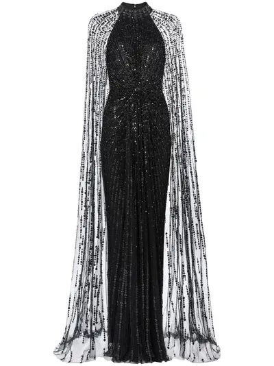 black concealed rear zip fastening sequin embellishment stud embellishment cape design