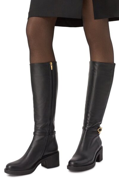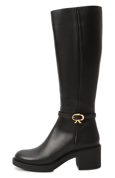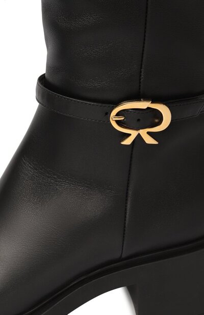 Сапоги Ribbon Dumont из гладкой кожи украсили ремешком с фирменной пряжкой Ribbon. Модель на широкой подошве и устойчивом каблуке средней высоты застегивается молнией сбоку.