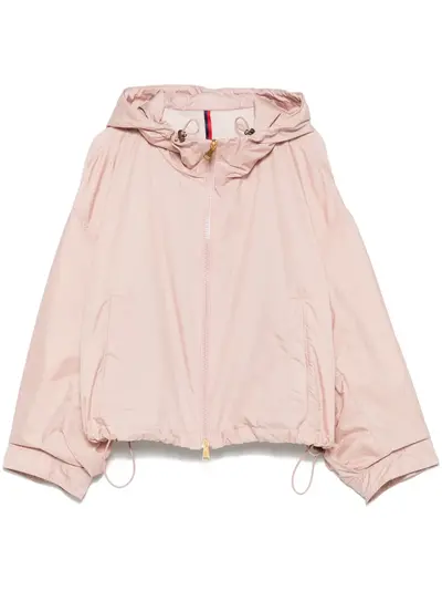 light pink front two-way zip fastening drawstring hood two side welt pockets logo patch at the sleeve
