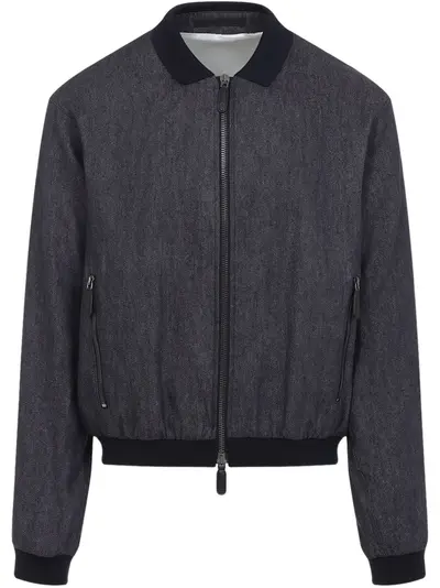 navy blue front two-way zip fastening two side zip-fastening pockets band collar long sleeves