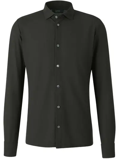 dark green front button fastening buttoned cuffs spread collar long sleeves