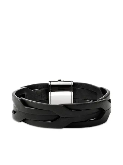 black braided design polished metal clasp adjustable fastening intertwined strips smooth leather finish Hallmarked in the United Kingdom at the London Assay Office.