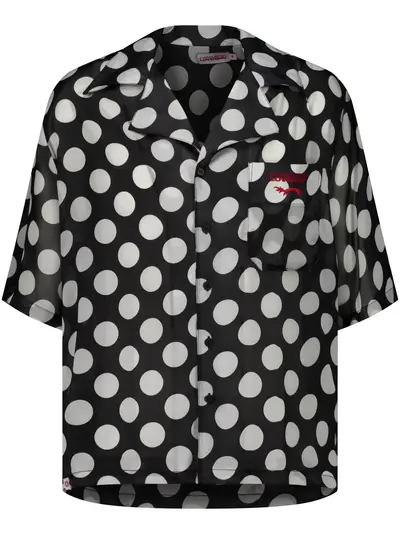 black front button fastening chest patch pocket polka dot print When buying this unisex item, keep in mind that it is graded in standard men's sizing.