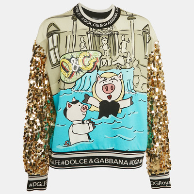 Dolce&Gabbana Green/Blue Year Of The Pig Print Cotton Sequin Sweatshirt S 1118137 - 1