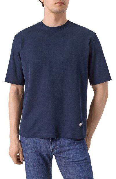 Футболка из хлопка и шелка Stefano Ricci mnh5103910/ctk01s (синий, lpn29394815)