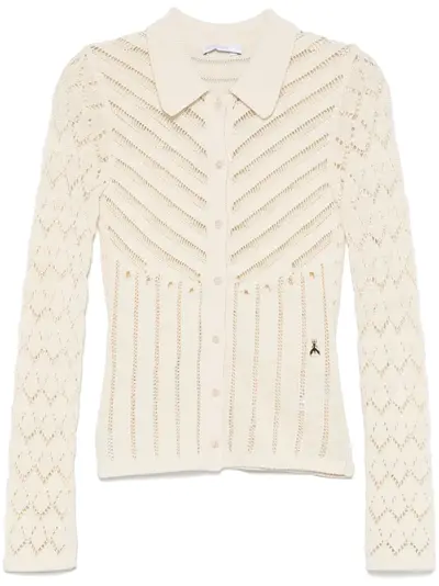 light beige front button fastening ribbed cuffs and hem logo charm polo collar