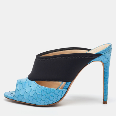 Alexandre Birman Light Blue/Black Python Leather and Neoprene Mules Size 37 1118401 (голубой, lpn29396538)