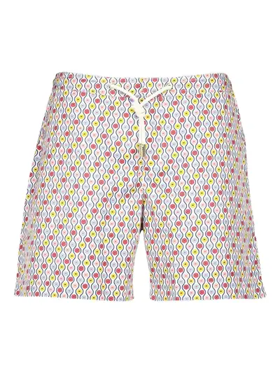 yellow elasticated drawstring waistband rear welt pocket geometric-pattern print Be mindful to try on swimwear over your own garments.