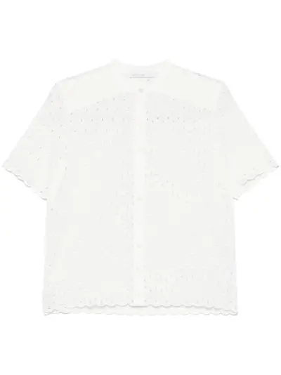 white front button fastening cut-out detailing scallop hem short sleeves