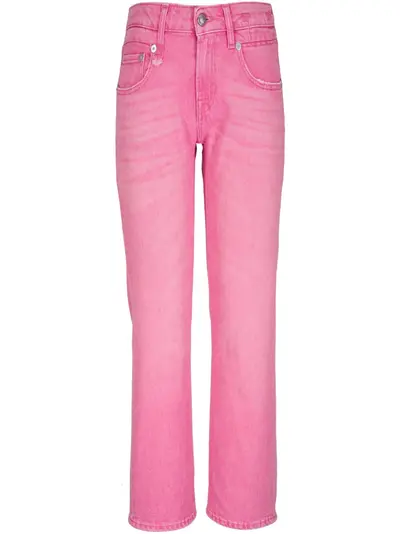 fuchsia pink concealed fly and button fastening belt loops classic five pockets appliqué logo