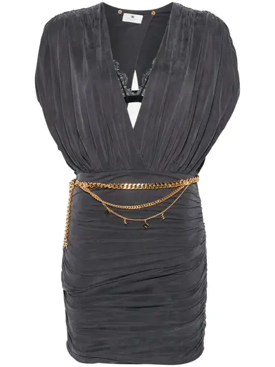 anthracite grey concealed rear hook and zip fastening detachable and adjustable waist belt draped detailing plunging V-neck