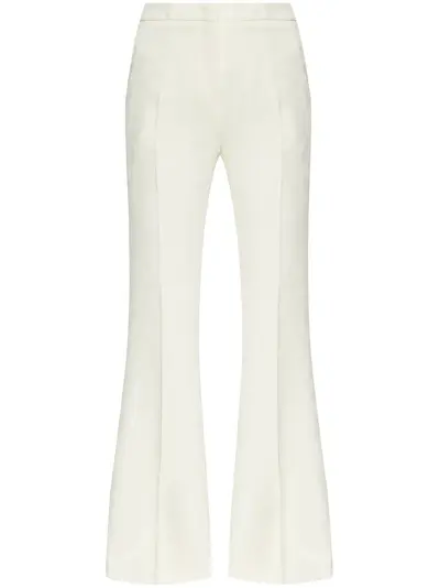 white concealed front fastening two side slash pockets high-waisted straight hem