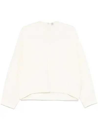 light beige rear zip fastening crinkled finish crew neck high-low hem